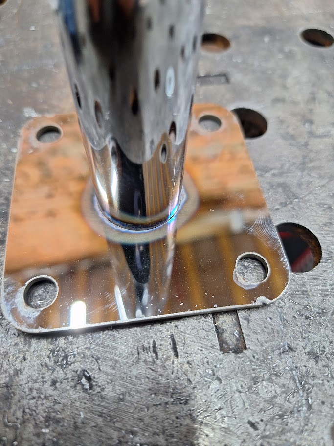 Раньше приклёпывали фланцы к хром трубе, получалось так себе как по виду так и по прочности. Наконец опыт и оборудование позволили изменить эту ситуацию. Теперь привариваем полированный нержавеющий фланец.